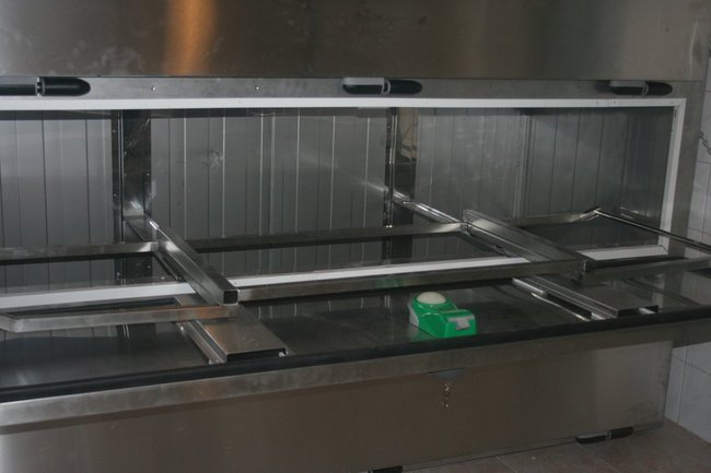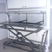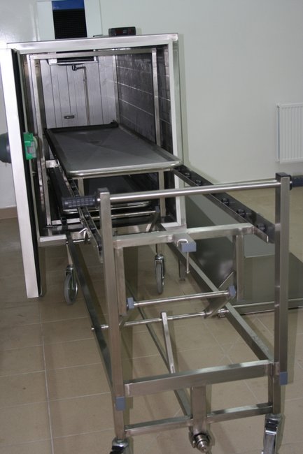 Oferowane przez nas komory do przechowywania zw³ok wyposa¿one s± w stela¿e, lub wózki przystosowane do przechowywania zw³ok na tacach, lub w trumnach. Wyposa¿enie komór wykonujemy wy³±cznie ze stali kwasoodpornej. W naszej ofercie proponujemy wiele wariantów wyposa¿enia komór z mo¿liwo¶ci± optymalnego dostosowania do istniej±cych warunków pracy. Komory o wiêkszych wysoko¶ciach-wielopoziomowe- i o wiêkszej objêto¶ci wyposa¿amy w specjalistyczne wózki z podnoszeniem hydraulicznym.
