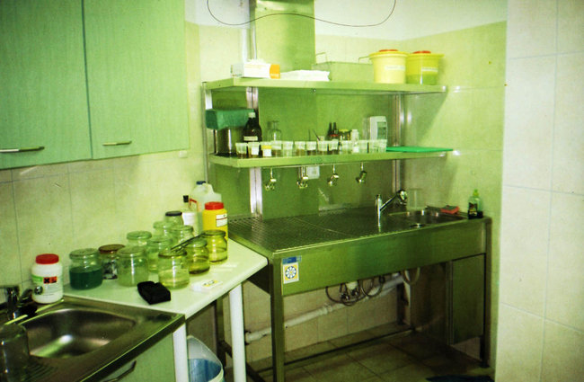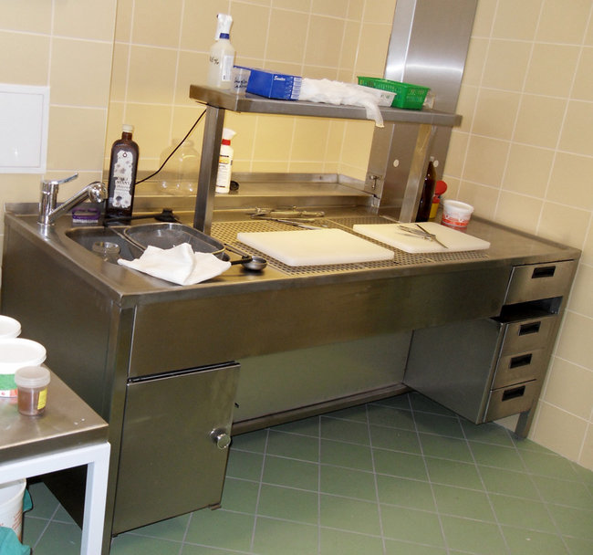 Stoły laboratoryjne (do badania próbek formalinowych) - wykonane ze